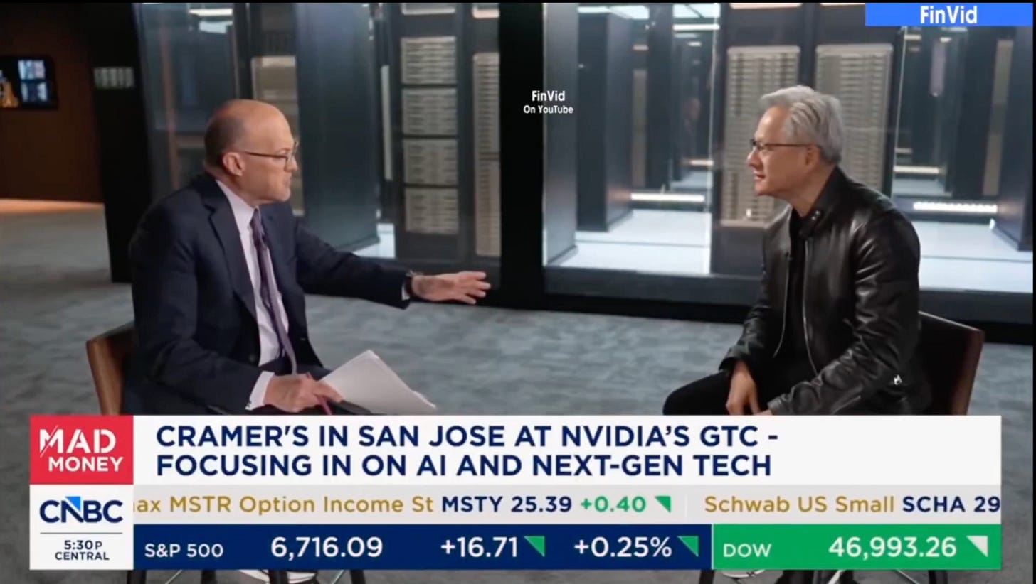 …Jim Cramer asked him [Jensen Huang] why companies are laying people off if AI is supposed to make everyone MORE productive.
